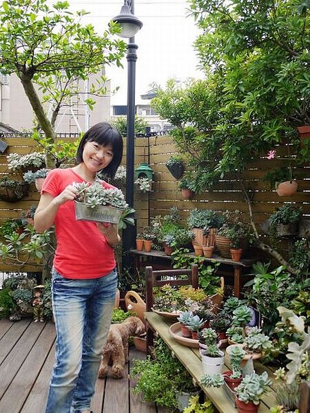 ↓喜歡做多肉植物組合的葛翎,大庭院裡擺滿了各式各樣可愛植栽