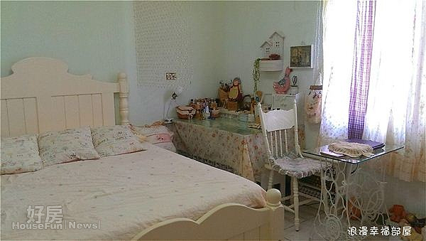 這幾年Eva瘋狂迷上鄉村風,什麼都想換成鄉村風的調調:新買的電視櫃的把手DIY換成有鄉村風的金屬把手;女兒的譜架纏上有鄉村風的小物;主臥室的鄉村風手工訂製床也甘願等上半年;甚至從工廠撿來的破銅爛鐵、廢棄溜滑梯的樓梯,她加以改裝,刷成白色,就變成鄉村風小物。「我最滿意的是將舊縫紉機換上玻璃桌面,再將鐵架漆成白色,成了獨一無二的筆電桌。」