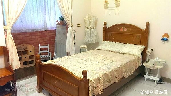 最令Eva驕傲的是,逛街時發現一個有蝴蝶結腰帶的夢幻模特兒架,猶豫好久終於買了,放在小女兒房裡,搭上她做的蕾絲衣服,整個夢幻到不行!除了臥室要浪漫,時常下廚的Eva也希望廚房要夢幻。「安裝新的抽油煙機後,發現與白色櫥櫃還有幾公分的落差,裡面的電線和油管都被看到了,我靈機一動,貼上塑膠蕾絲貼紙,立刻將縫隙遮住,讓煮菜的空間也變得很夢幻。」