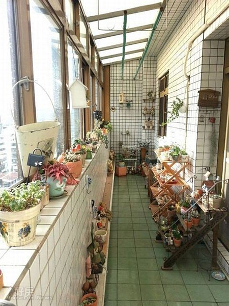 ←採光好的陽台擺放很多蝶谷巴特和多肉植物組合的創作