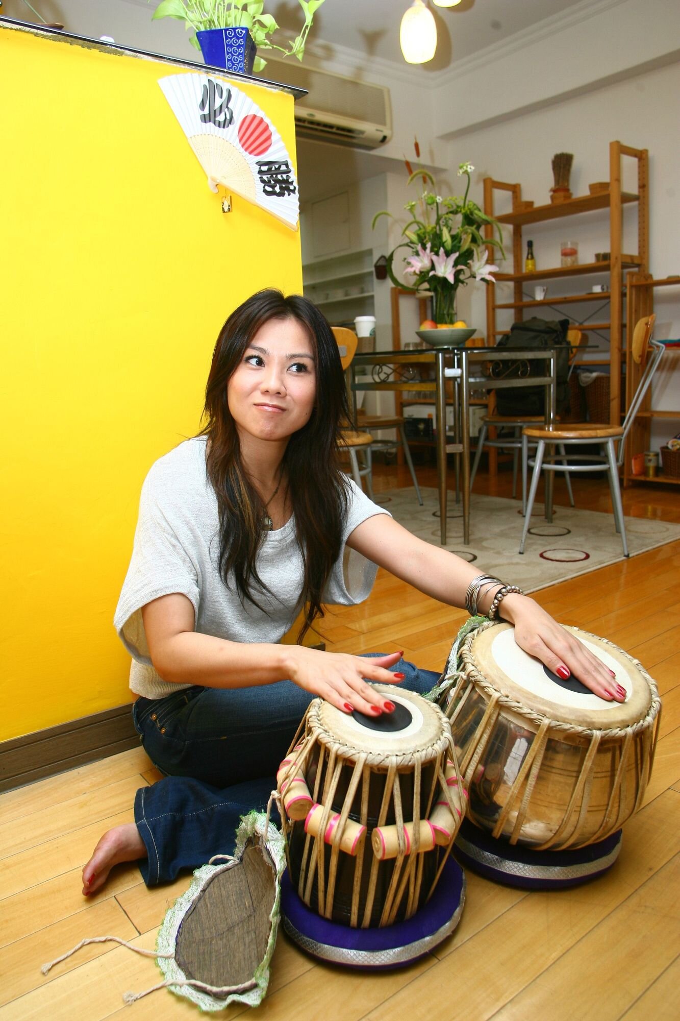 ←蔡健雅的生活離不開音樂,除了收藏吉他,還有鼓樂