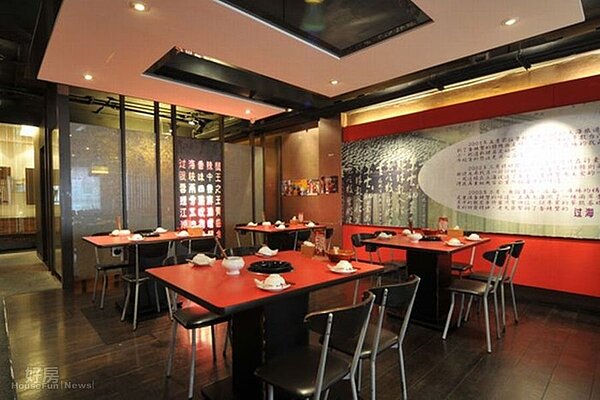 位在八德路的「過海香辣蟹」,遠遠就可以看到紅色鮮豔的招牌,門口側邊則有「曾國城」大大的人像招牌;為了營造舒適用餐環境,店內桌椅寬敞,其中桌面刻意以「紅色」為主軸,希望讓生意火紅、蒸蒸日上,同時為了兼顧人數眾多的客群,也設置獨立包廂,裡面有大幅山水畫和假花裝飾,讓用餐環境有濃濃藝術氣息。