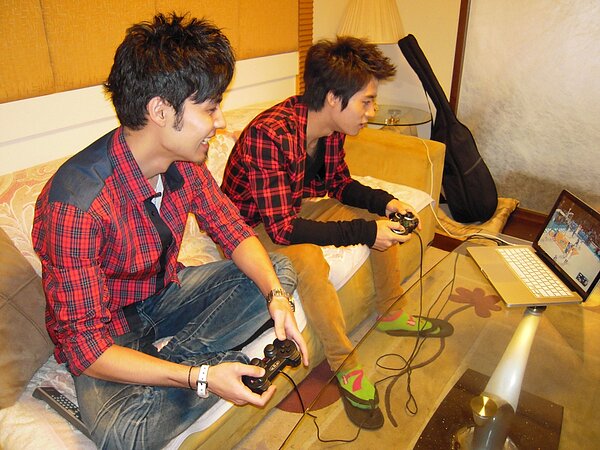 ↑ 兩位大男生玩起電動,常會忘了吃飯,最後只好以泡麵果腹。