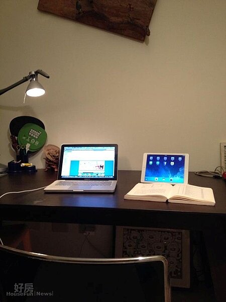 書桌上有兩台電腦,方便他查詢論文的文獻資料