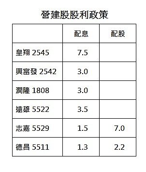 由於去年獲利不錯,因此營建股也成為今年高殖利率股的主力族群。從近期各公司公告的配股、配息情況來推算,許多營建股殖利率高達8-10%以上,也推升了股價的表現。