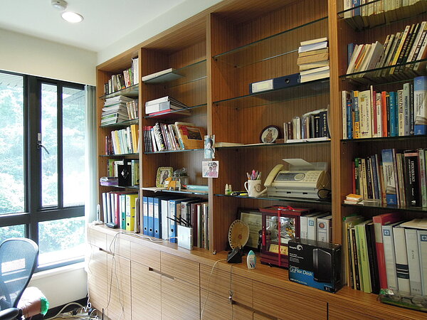 ↓當初花不少錢請設計師和木工打造大型書櫃,收納空間很足夠