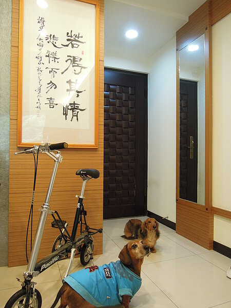 Andy笑說,「大安硯」的後幢面對富陽生態公園,花草樹木,滿眼綠色,除了蟲鳴鳥叫,就沒有其他吵雜的聲音,「我怕吵,但又不喜歡關窗戶,自從住在這裡之後,睡得很好,過去一整年的失眠都因為環境的改變而治癒。」他打趣說,連本來不太喜歡活動的老狗都變得有活力,「看得出來牠真的很開心,常常和我一起坐在窗前看風景。」