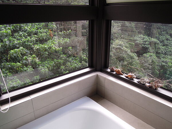 ↓浴室面對綠色樹林,洗澡、上廁所都不必拉窗帘