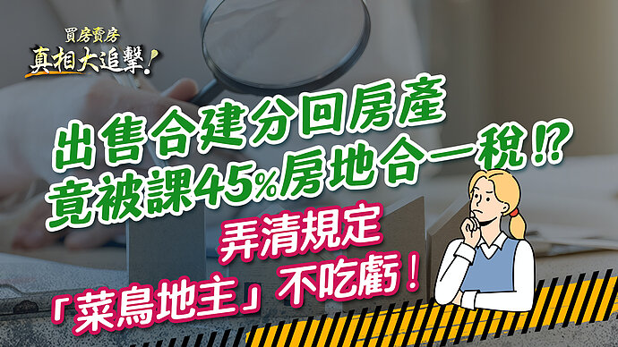 出售合建分回房產竟被課45%房地合一稅!?弄清規定「菜鳥地主」不吃虧!