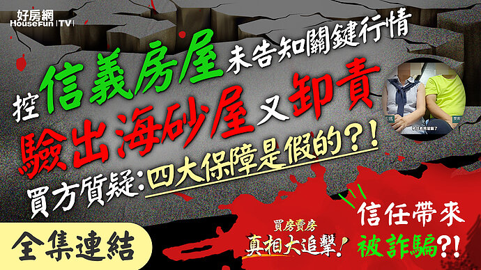 控信義房屋未告知關鍵行情 驗出海砂屋又卸責 買方質疑 : 四大保障是假的?!信任帶來被詐騙?!
