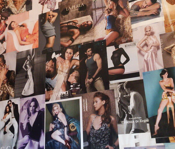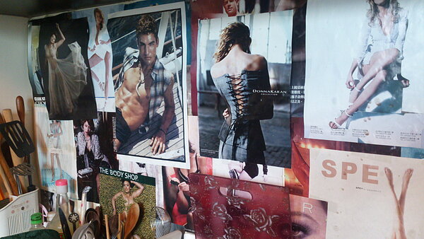 「剛出社會時,曾在寫真沙龍照的工作室打工過,留白之處就會以雜誌圖片或照片拼貼出一個比較摩登風格的角落,供客人拍照。」這個印象給了她靈感,由於學生時代念的是廣告設計,手邊一直有許多長年收藏的雜誌稿,從模特兒肢體、服裝、化妝品與香氛、精品等,搬了許多次家捨不得丟。